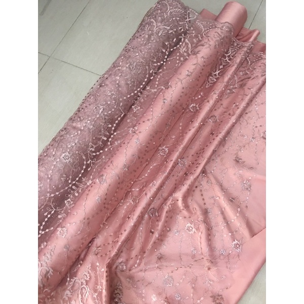 Beli kain bahan kebaya brokat tile bordir kulit warna rose gold terbaru di shopee.